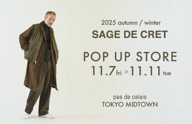 News news tokyo November 07. 2025 2025.11.7.fri スタート!《SAGE DE CRET》POP UP STORE Tokyo Japan September 30. 2025 【Little Forest Cats】 イベント開催! September 25. 2025 フクーポンキャンペーン 開催! Tokyo Japan March 12. 2025 POP UP STORE イベント開催! Tokyo Japan March 01. 2025 2025S/S ORDER NOVELTY EVENT! news December 04. 2024 2024A/W PRECIOUS COLLECTION news November 06. 2024 2024A/W PRECIOUS COLLECTION news October 16. 2024 2024A/W PRECIOUS COLLECTION news September 27. 2024 2024A/W PRECIOUS COLLECTION Tokyo Japan September 09. 2024 2024A/W PRECIOUS COLLECTION news August 20. 2024 ORDER NOVELTY EVENT part.1 Tokyo Japan July 17. 2024 W POINT FAIR Tokyo Japan July 11. 2024 ONLINE SALE START Tokyo Japan April 18. 2024 2024SS【25th anniv. - SPECIAL ORDER NOVELTY EVENT -】③ March 19. 2024 SAGE DE CRET pour pas de calais第2弾 Tokyo Japan March 15. 2024 2024SS【25th anniv. - SPECIAL ORDER NOVELTY EVENT -】② Tokyo Japan February 16. 2024 COLOR ORDER EVENT Tokyo Japan February 16. 2024 2024SS【25th anniv. - SPECIAL ORDER NOVELTY EVENT -】 Tokyo Japan January 31. 2024 2024 SPRING&SUMMER COLLECTION Tokyo Japan November 06. 2023 2023A/W カタログモデルご紹介