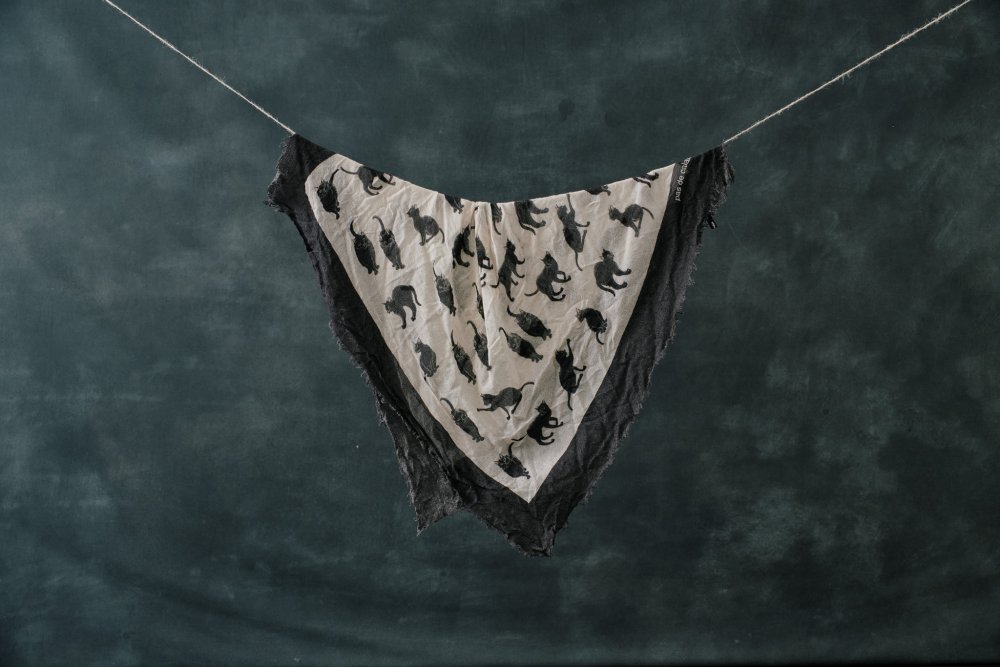 展示会でもひときわ人気を集めた、猫プリントのスカートやブラウス、ストールのほか